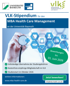Der Verband leitender Krankenhausärztinnen und -ärzte e.V. vergibt erneut ein Stipendium für den berufsbegleitenden MBA Health Care Management an der Universität Bayreuth (Studienstart: Oktober 2026).